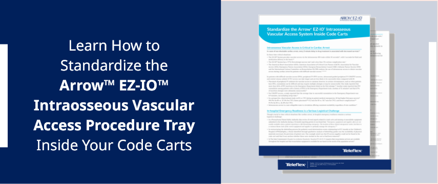 The Arrow™ EZ-IO™ lntraosseous Vascular Access System is indicated for intraosseous access anytime in which vascular access is difficult to obtain in emergent, urgent or medically necessary cases for up to 24 hours. For patients ≥ 12 years old, the device may be extended for up to 48 hours when alternate intravenous access is not available or reliably established. Refer to the Instructions for Use for a complete listing of indications, contraindications, warnings, precautions, and approved insertion sites.